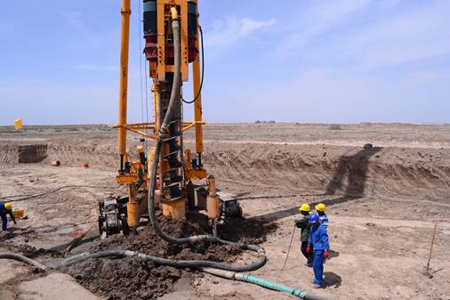 本期工程地處石河子市121團團部東北約1公里處。該場地東西長351米,南北寬約220米。廠址地勢平坦開闊。我單位主要承擔該工程地基處理施工任務(wù),主要包括: 主廠房、冷卻塔、煙囪等部位的降水工程、CFG樁、土方開挖、樁頭破除、褥墊層施工及戈壁料換填任務(wù)。公司共完成42929.27m3土方開挖,直徑400mm的CFG樁2868根,約4754.87m³混凝土,6306.71 m3戈壁料換填墊層施工以及全場區(qū)的降水工程。