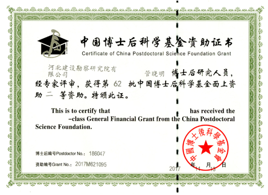 根據(jù)《中國(guó)博士后科學(xué)基金面上資助實(shí)施辦法》,公司在站博士后管曉明的《非飽和地層盾構(gòu)隧道開挖面穩(wěn)定性與控制研究》,榮獲中國(guó)博士后科學(xué)基金第62批面上二等資助5萬(wàn)元。