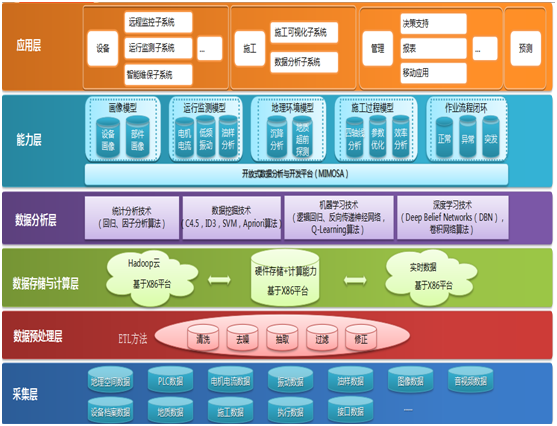 本項(xiàng)目在研究盾構(gòu)的運(yùn)行狀態(tài)進(jìn)行監(jiān)控和管理的基礎(chǔ)上,將盾構(gòu)運(yùn)行狀態(tài)參數(shù)及工況數(shù)據(jù),通過采集終端經(jīng)PLC、光纖、路由器、VPN隧道傳輸至遠(yuǎn)程數(shù)據(jù)中心,數(shù)據(jù)存儲使用工業(yè)級實(shí)時數(shù)據(jù)庫,采集頻率可達(dá)毫秒級。業(yè)務(wù)基礎(chǔ)—對各類盾構(gòu)機(jī)(機(jī)、電、液)深入分析,提供盾構(gòu)軌跡、管片軌跡、單環(huán)分析、掘進(jìn)效率等統(tǒng)計(jì)分析功能,以便管理決策層把握各項(xiàng)目施工情況。構(gòu)建盾構(gòu)/TBM施工與健康管理平臺,實(shí)現(xiàn)以下四個功能:1、盾構(gòu)遠(yuǎn)程監(jiān)控,2、智能維保,3、盾構(gòu)施工輔助巡航,4、組態(tài)化模塊定制。進(jìn)行盾構(gòu)施工大數(shù)據(jù)相關(guān)性、關(guān)聯(lián)分析、影響因素分析,關(guān)鍵子系統(tǒng)健康管理和故障診斷,基于大數(shù)據(jù)的比較、聚類、預(yù)測實(shí)現(xiàn)對盾構(gòu)施工進(jìn)行遠(yuǎn)程管理。