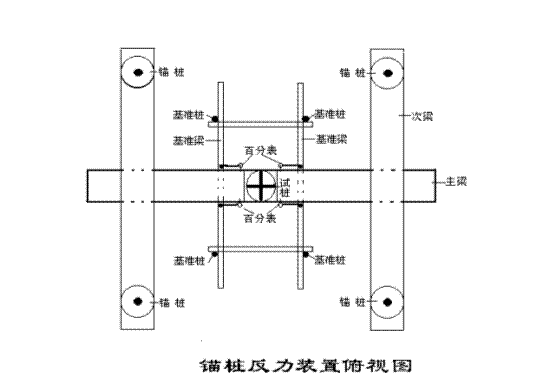錨樁反力裝置就是將被測樁周圍對稱的幾根錨樁用錨筋與反力架連接起來,依靠樁頂?shù)那Ы镯攲⒎戳茼斊?,由被連接的錨樁提供反力,提供反力的大小由錨樁數(shù)量,反力架強(qiáng)度和被連接錨樁的抗拔力決定。錨樁反力裝置一般不會(huì)受現(xiàn)場條件和加載噸位數(shù)的限制,當(dāng)條件允許,采用工程樁作錨樁是最經(jīng)濟(jì)的。