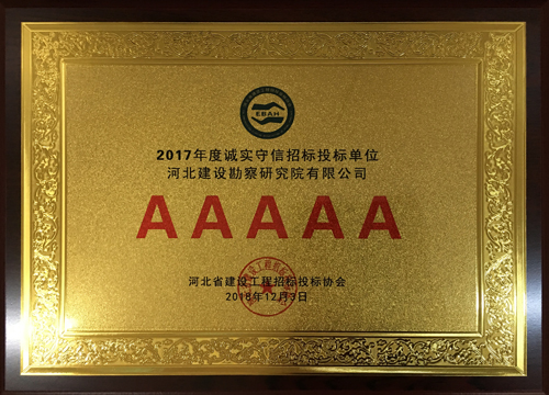 近日,我公司被河北省建設(shè)工程招標(biāo)投標(biāo)協(xié)會(huì)評(píng)為2017年度河北省建設(shè)工程招標(biāo)投標(biāo)誠實(shí)守信5A級(jí)施工企業(yè)。