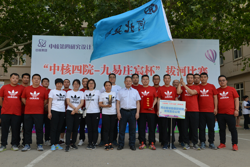 2019年5月31日,為慶祝建國(guó)七十周年,充分展現(xiàn)勘察設(shè)計(jì)行業(yè)建設(shè)成就和行業(yè)風(fēng)采,由石家莊市工程勘察咨詢業(yè)協(xié)會(huì)主辦、中核第四研究院設(shè)計(jì)工程有限公司和河北九易莊宸科技股份有限公司承辦的“中核四院-九易莊宸杯”拔河比賽,在中核第四研究設(shè)計(jì)工程有限公司院內(nèi)正式拉開帷幕。我公司總經(jīng)理李華偉參加了開幕式并作了熱情洋溢的講話。