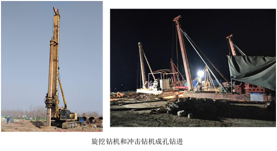 本工程主要包括從黃河左岸大堤位置起,大橋主橋17#、18#和19#墩三個墩的樁基工程,主要工作內(nèi)容為:成孔、水下混凝土灌注和配合樁基檢測。自2018年11月22日開工,2019年5月19日全面竣工,共計(jì)179天,投入旋挖鉆機(jī)TR360D 1臺,沖擊鉆機(jī)6臺,空壓機(jī)1臺,泥漿處理器1臺。施工完成后,經(jīng)相關(guān)單位檢測和驗(yàn):本工程鉆孔成孔深度、成孔直徑符合設(shè)計(jì)要求;入巖深度和巖石強(qiáng)度符合設(shè)計(jì)要求;樁基超聲波檢測合格率100%,優(yōu)良率100%。