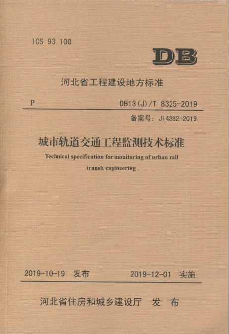 近日我公司主編的河北省工程建設(shè)地方標(biāo)準(zhǔn)《城市軌道交通工程監(jiān)測技術(shù)標(biāo)準(zhǔn)》(DB13(J)/T8325-2019)由河北省住房和城鄉(xiāng)建設(shè)廳發(fā)布,于2019年12月1日起實施,正式出版發(fā)行。這是由我公司主編發(fā)行的第11項地方標(biāo)準(zhǔn)。