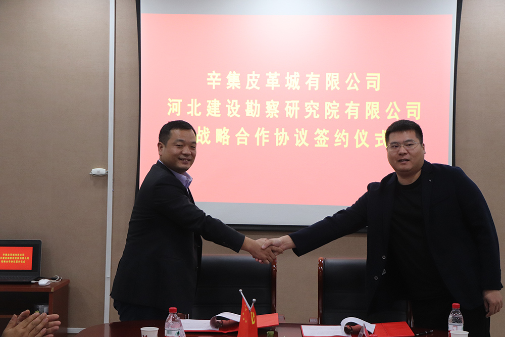 11月1日,陽光和煦,微風送爽,秋意正濃,河北建設勘察研究院有限公司同辛集皮革城集團有限公司戰(zhàn)略合作協(xié)議簽約儀式,在辛集國際皮革城盛大舉行。