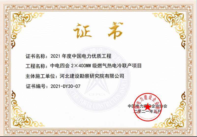 近日,中國電力建設(shè)企業(yè)協(xié)會公布了2021年度中國電力優(yōu)質(zhì)工程評審結(jié)果,我公司作為中電四會2×400MW級燃氣熱電冷聯(lián)產(chǎn)項目主體施工單位,榮獲2021年度中國電力行業(yè)優(yōu)質(zhì)工程獎。