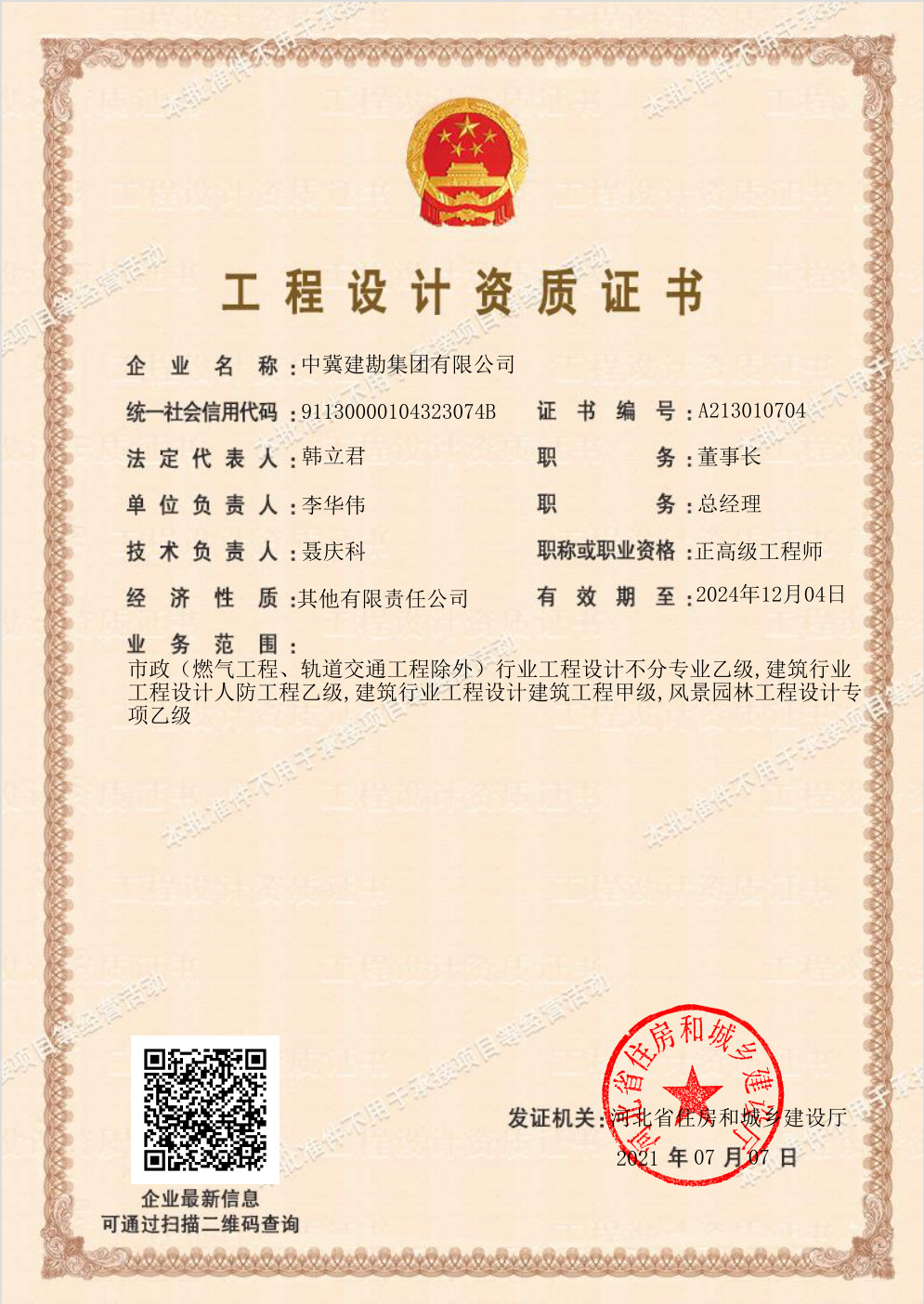 集團(tuán)公司取得風(fēng)景園林工程設(shè)計專項(xiàng)乙級資質(zhì)證書