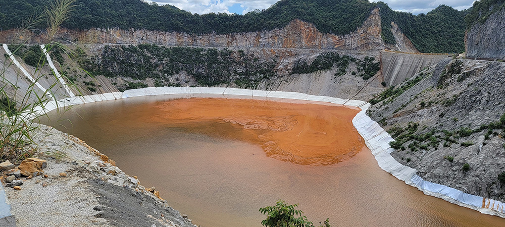 對尾礦庫來說防止?jié)B漏極其關(guān)鍵,此項目排泥庫庫區(qū)位于巖溶發(fā)育區(qū),巖溶治理是關(guān)鍵中的關(guān)鍵。庫周設(shè)計3座堆石壩,2座混凝土重力壩,壩體的施工質(zhì)量關(guān)系排泥庫的運行安全。