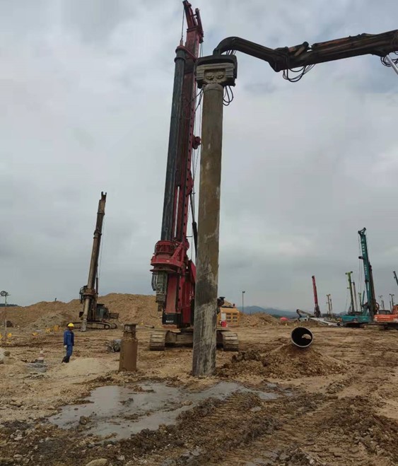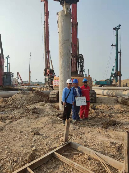 本工程自2021年01月18日開(kāi)工,2021年09月24日完工。共完成旋挖灌注樁直徑(600mm)4776根、直徑(800mm)170根,混凝土等級(jí)C30、C35P8兩種等級(jí),直徑600mm樁端入中風(fēng)化板巖≥1.2m,直徑800mm樁端入中風(fēng)化板巖≥1.6m。