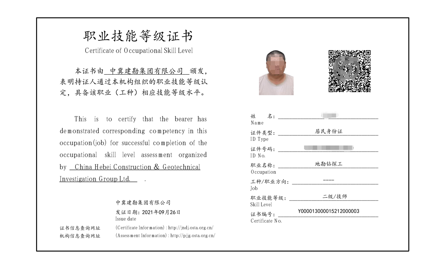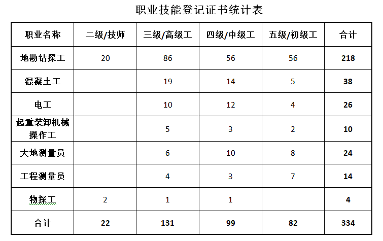 根據(jù)《國家職業(yè)技能標(biāo)準(zhǔn)》,公司按照取得的職業(yè)技能等級認(rèn)定范圍,結(jié)合公司制度及內(nèi)部認(rèn)定的工人技術(shù)等級情況,制定了《中冀建勘集團(tuán)有限公司職業(yè)技能等級套改方案》,組織開展了334名技術(shù)工人職業(yè)技能等級認(rèn)定工作,取得了職業(yè)技能等級證書。同時,根據(jù)政府相關(guān)政策,申請取得了相應(yīng)的補(bǔ)助資金。