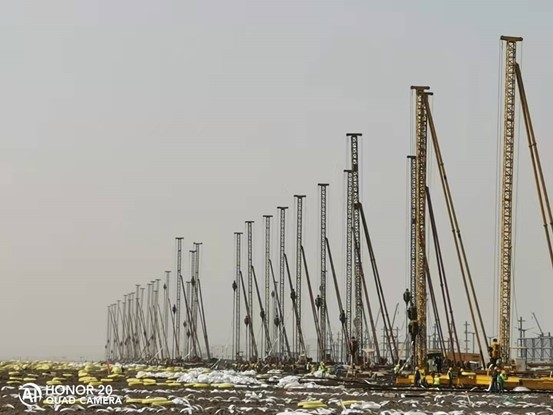 本工程自2020年03月31日開工,2021年10月8日完工。完成鋪設150g/㎡編織土工布約140萬㎡,鋪設200g/㎡無紡土工布約92萬㎡,打設塑料排水板約926萬m,真空管網連接約50萬m,鋪設密封膜約158萬㎡,真空預壓淺層約35萬㎡和深層約39萬㎡。