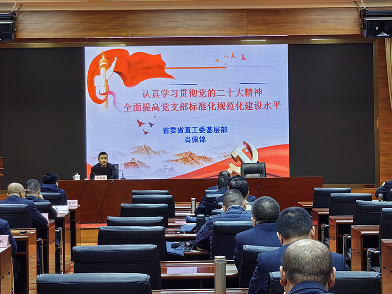 省直工委基層部肖佩錦老師所授的《認(rèn)真學(xué)習(xí)貫徹黨的二十大精神 全面提高黨支部標(biāo)準(zhǔn)化規(guī)范化建設(shè)水平》講授了二十大對黨支部的新部署新要求、如何把握黨支部職責(zé)任務(wù)及抓好黨支部建設(shè)。
