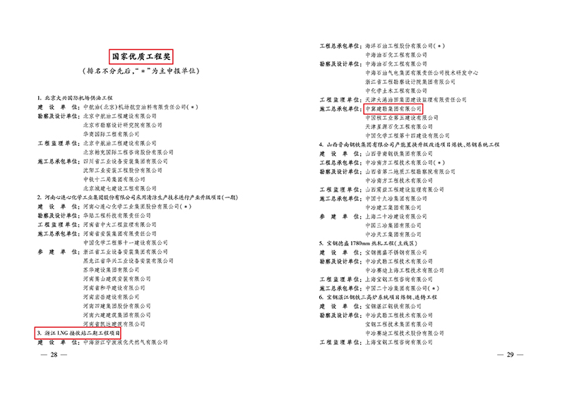 12月9日,中國施工企業(yè)管理協(xié)會發(fā)布了《關于表彰2022-2023年度國家優(yōu)質(zhì)工程獎的決定》(中施企協(xié)字[2023]124號),我公司參與建設的3項工程獲得國家優(yōu)質(zhì)工程獎,其中1項工程獲得國家優(yōu)質(zhì)工程金獎。