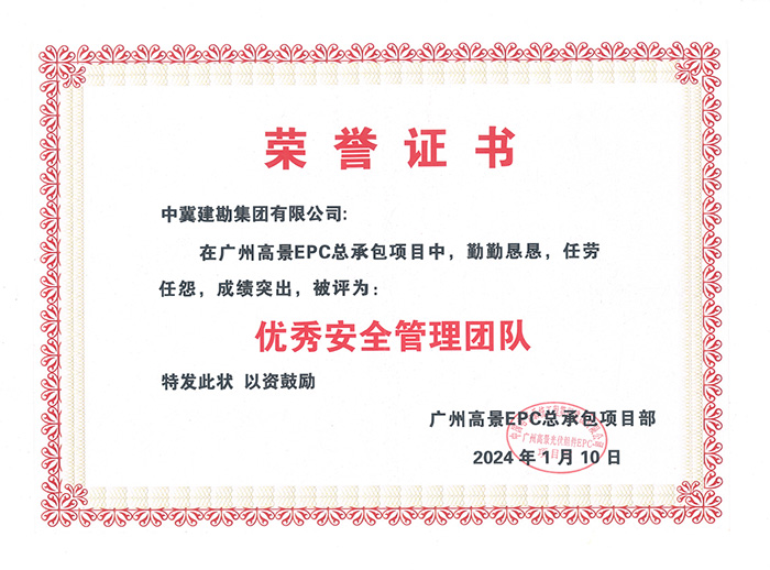 中國(guó)電子系統(tǒng)工程第四建設(shè)有限公司發(fā)來(lái)的表?yè)P(yáng)信,對(duì)我公司在廣州高景太陽(yáng)能科技有限公司高效光伏組件項(xiàng)目建設(shè)過(guò)程中,公司的大力配合和項(xiàng)目部全體人員的共同努力下,安全管理體系覆蓋到位,質(zhì)量保證措施到位,嚴(yán)格把控質(zhì)量、安全關(guān),出色完成了施工任務(wù),特向我公司各級(jí)領(lǐng)導(dǎo)、全體參建員工表示衷心的感謝,并授予“優(yōu)秀安全管理團(tuán)隊(duì)”和“優(yōu)秀資料包商”榮譽(yù)。