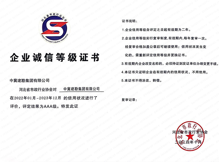 集團(tuán)公司榮獲“河北省市政行業(yè)AAA級(jí)誠信企業(yè)”榮譽(yù)稱號(hào)