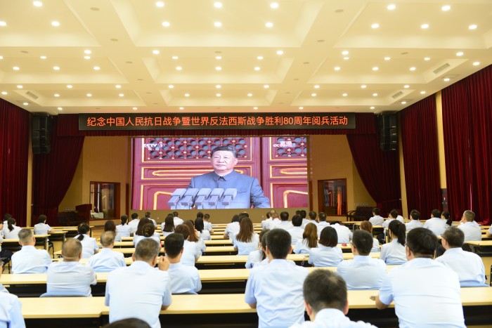 9月3日上午9時(shí),集團(tuán)公司在石家莊機(jī)關(guān)辦公樓五樓會議廳組織近150名職工集中觀看了“紀(jì)念中國人民抗日戰(zhàn)爭暨世界反法西斯戰(zhàn)爭勝利80周年大會”直播盛況。