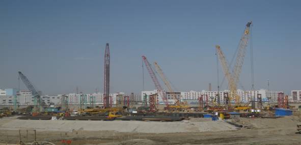 我公司采用泵吸反循環(huán)鉆機(jī)成孔施工工藝,共完成樁徑1.0m,樁長(zhǎng)76.6-98.75m工程樁271根,制作安裝鋼筋籠約4600t。該工程創(chuàng)造了幾項(xiàng)國(guó)家和世界之最:民用建筑工程樁水下澆筑混凝土之最:C55;民用建筑工程樁鋼筋規(guī)格之最:直徑50mm三級(jí)鋼;民用建筑工程樁長(zhǎng)細(xì)比之最:121:1。本工程樁孔垂直度要求控制在1/200以內(nèi),采用100%超聲波檢測(cè),施工中制定了預(yù)防孔斜技術(shù)措施,保證了成孔質(zhì)量。