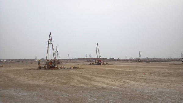 一期勘探孔451個,總進尺17351m;二期勘探孔475個,總進尺18310m??碧竭^程中采用了鉆探、靜力觸探、標準貫入試驗、波速測試、電阻率測試等多種方法。根據現(xiàn)場揭露的土層和建設單位提供的建筑物結構型式、基礎形式、基礎埋深、地基基礎方案等,對可能的天然地基、復合地基和樁基礎分別進行了分析及建議。